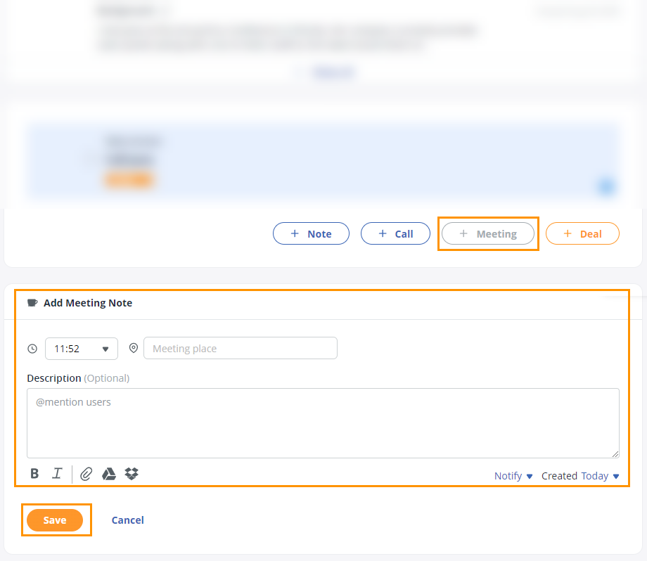 Sometimes the best way to Get Things Done is to meet in person. OnePageCRM allows you to keep track of all your meetings by adding a Meeting note to your contacts.